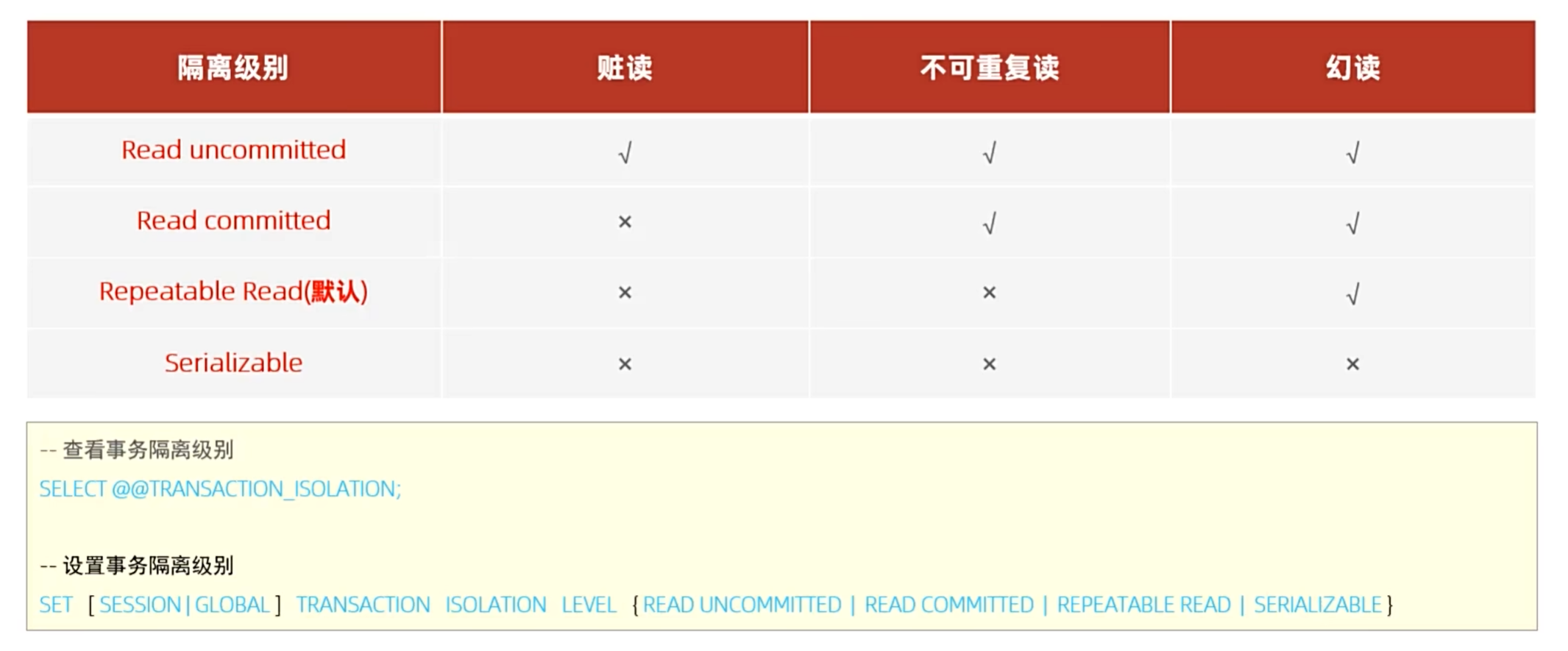简介 默认MYSQL事务是自动提交的,所以需要手动开启事务,手动提交事务,有异常手动回滚事务 事务操作 方法一 方法二 事务四大特性 并发事务问题 事务隔离级别 注意:事务隔离级别越高,安全性越高,性能越低