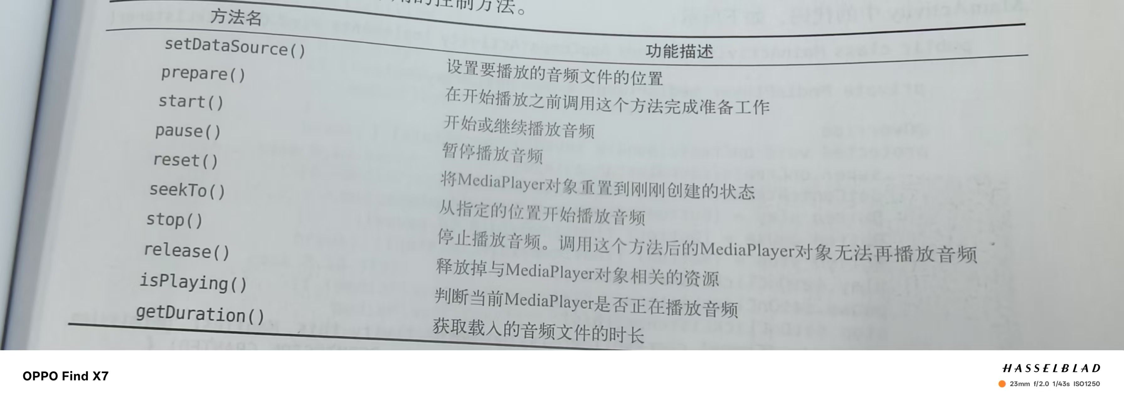 播放多媒体文件 播放音频 MediaPlayer类的方法: