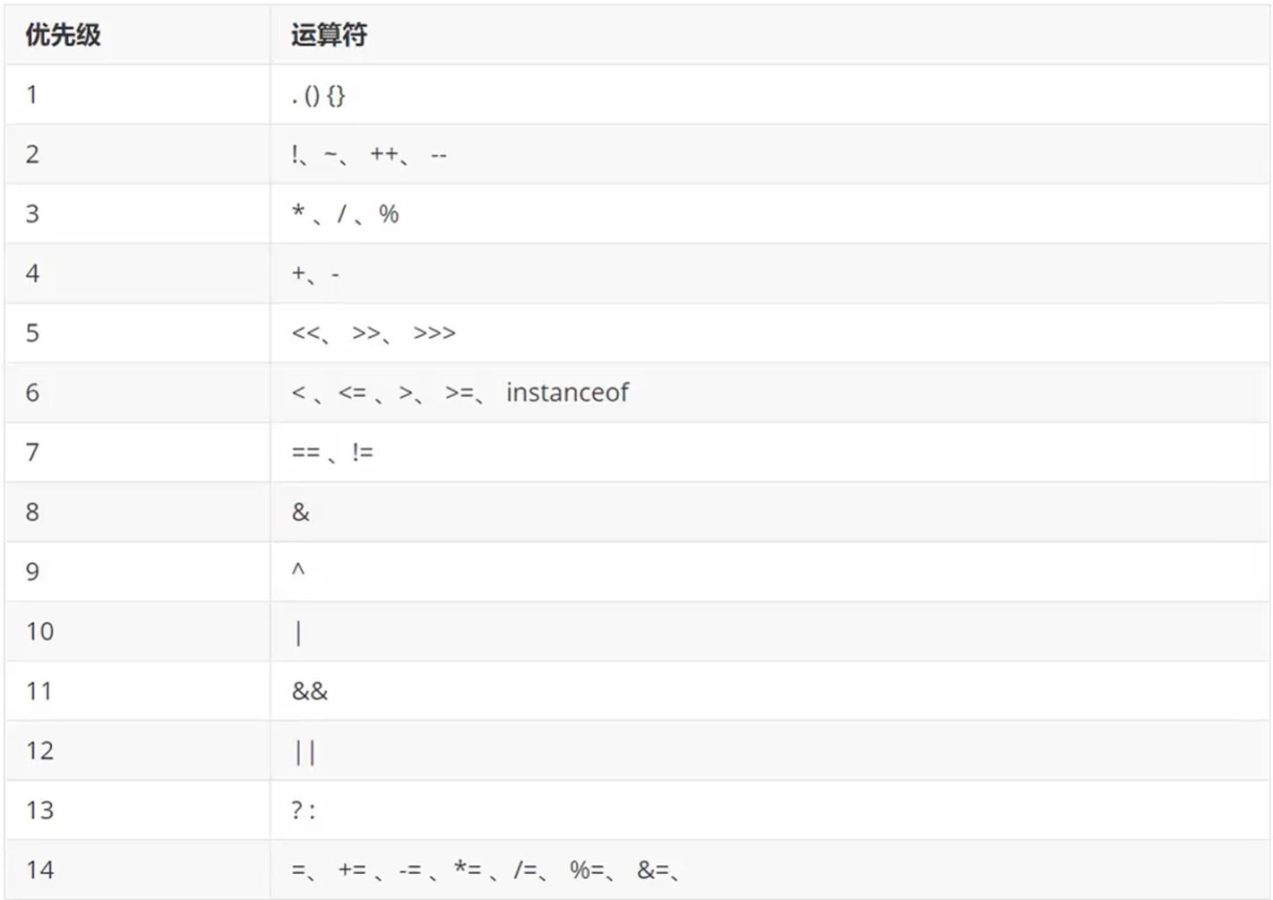 运算符的优先级