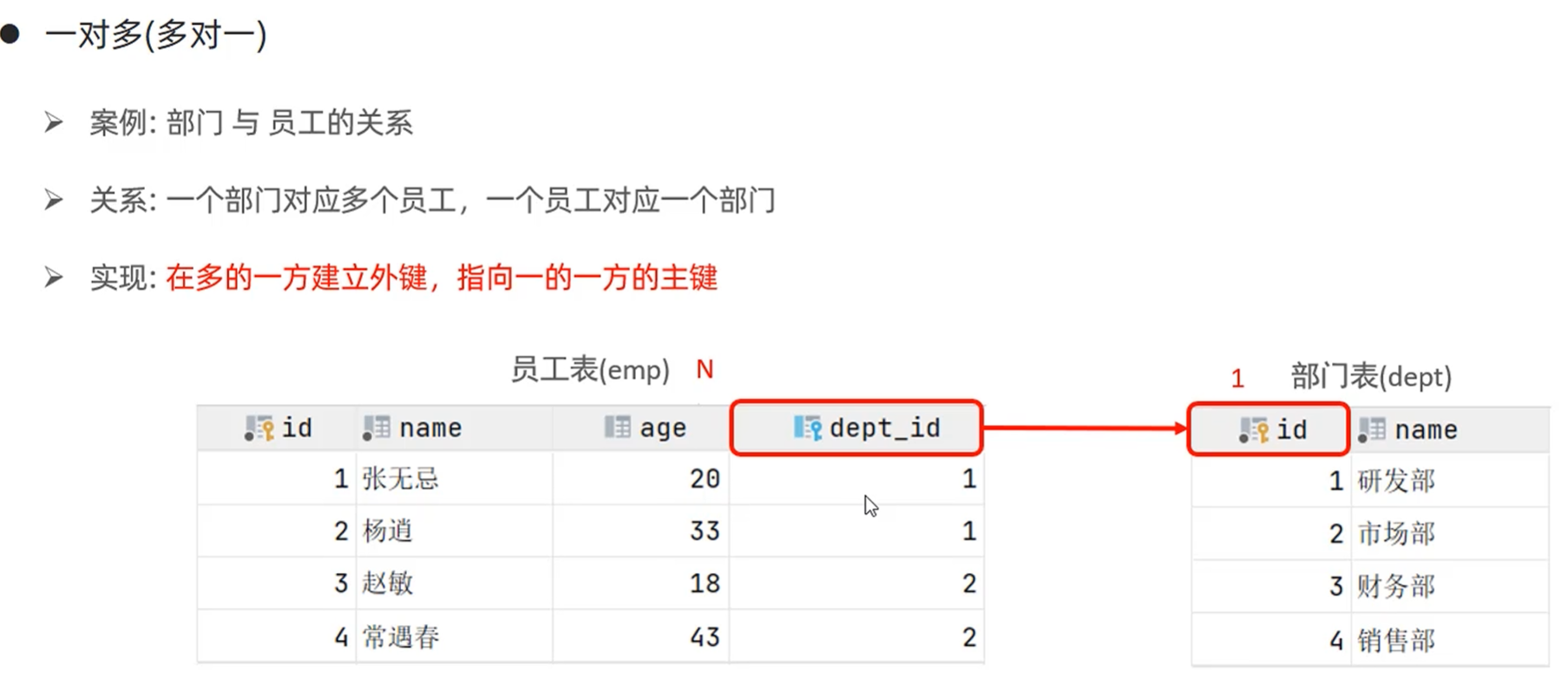 • 一对多