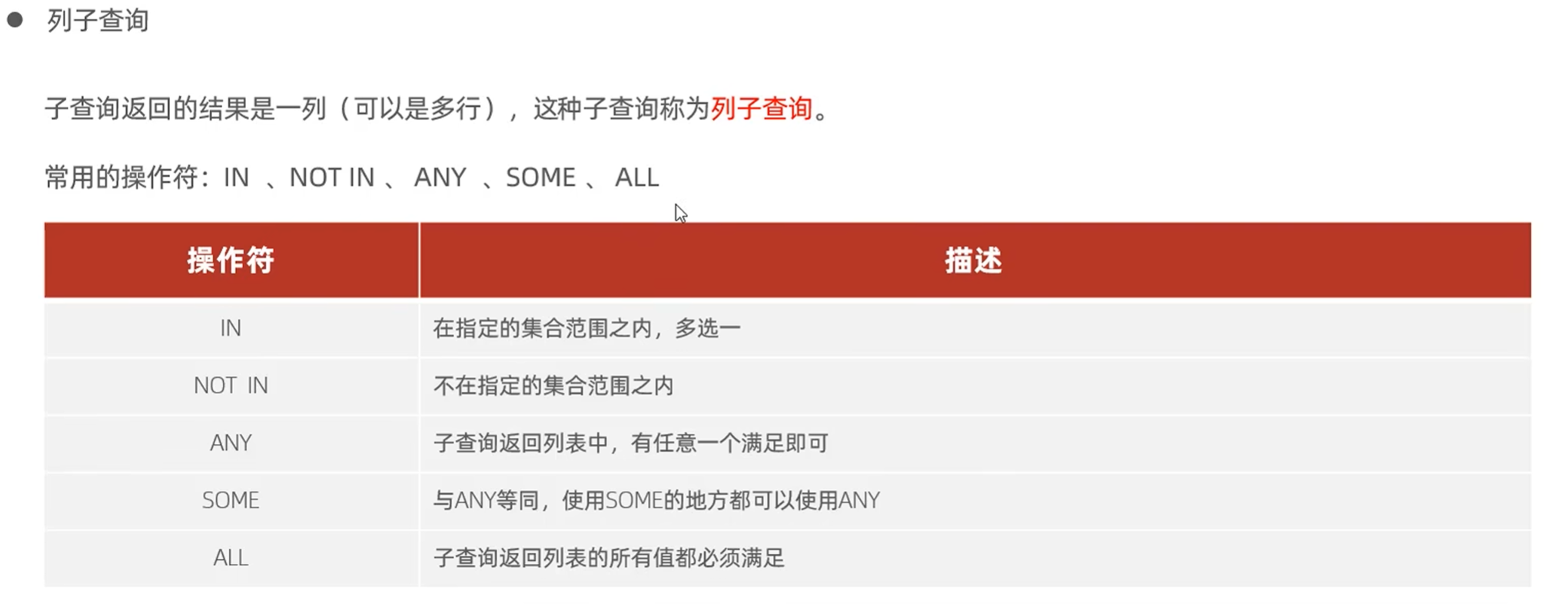 列子查询